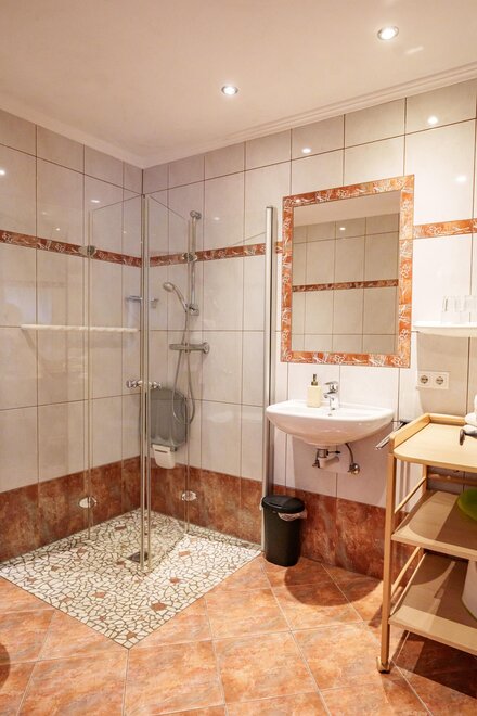 With a beautiful bedroom and four-poster bed, shower/WC, satellite TV, radio and couch, on request also with cot/crib, second bedroom with king size bed, 2 sofa-beds, kitchen, for people with handicapRoom/apartment features