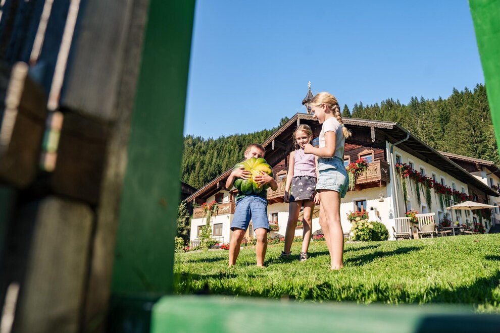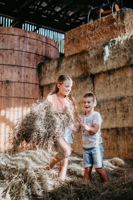 After a fun-filled day, unwind in our cozy apartments while the kids enjoy hay jumping or egg collecting. Savor fresh products from our farm and relax on the terrace or by the campfire in the evening. Here at Sinnhubgut, warmth, nature, and tradition come together for an unforgettable farm holiday with the whole family.