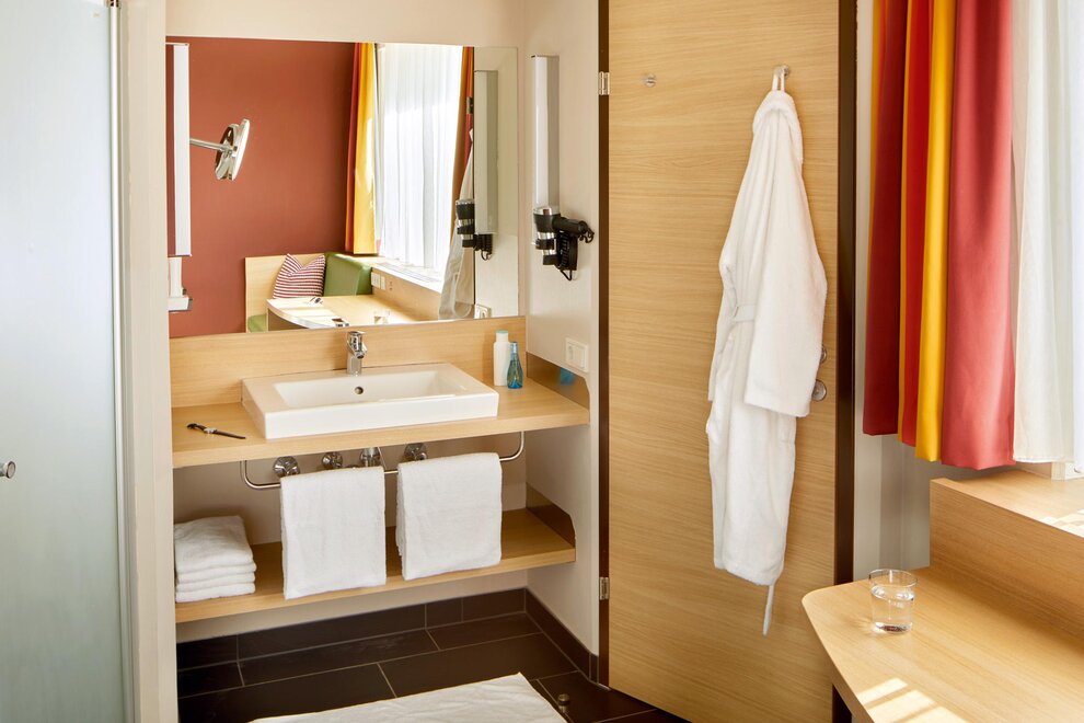 The modern furnished triple room superior has 1 double bed (separate mattresses) and 1 separate single bed. The washstand is integrated in the room, the shower and the toilet next to it are separate. Look forward to entertainment via cable TV, radio via TV and free Wi-Fi.