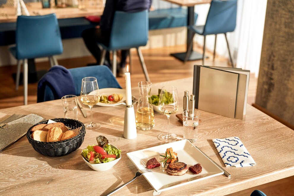 Enjoy a diverse breakfast buffet featuring exquisite coffee and tea specialties, a selection of meats, cheeses, jams, granola, and freshly prepared fruit salad – the perfect start to your day. A rich selection of vegetarian and vegan dishes is also offered. With half board, our guests can enjoy a varied 5-course buffet in the evening, complemented by daily changing vegetarian dishes.