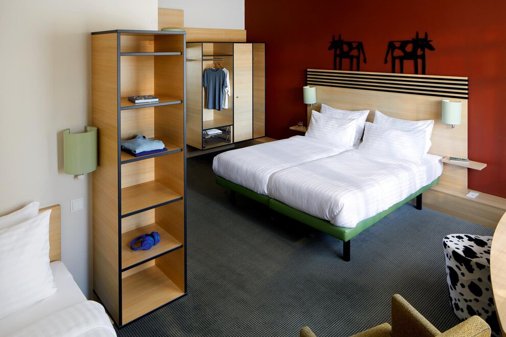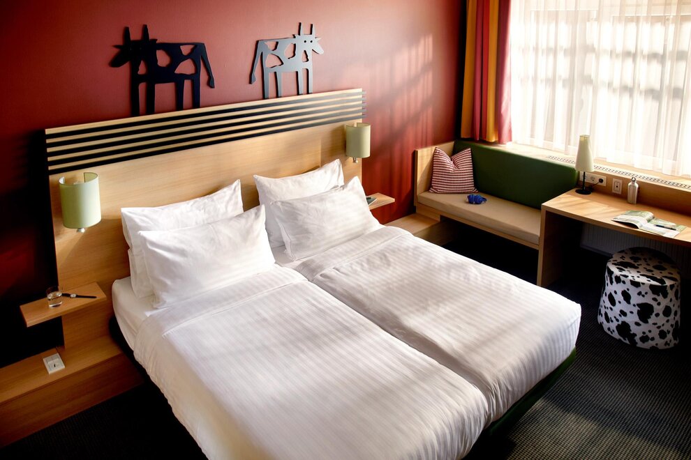 The modern furnished double room classic has a double bed with 2 separate mattresses. The washstand is in the room, the shower and the WC are separate. In terms of entertainment, cable TV, radio via TV and free Wi-Fi await you in your soundproofed room.