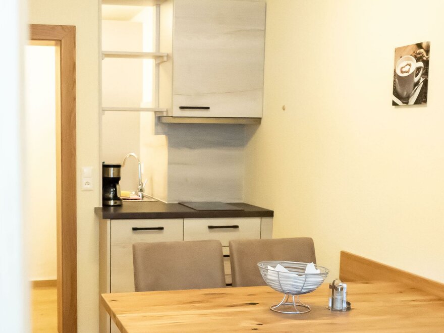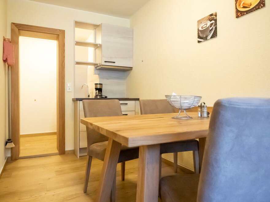 The Studio Planai has a living-sleeping area with double bed and cozy dining area, kitchenette with microwave, electric stove, refrigerator, dishwasher, 1 bathroom with shower / WC and south-facing balcony.