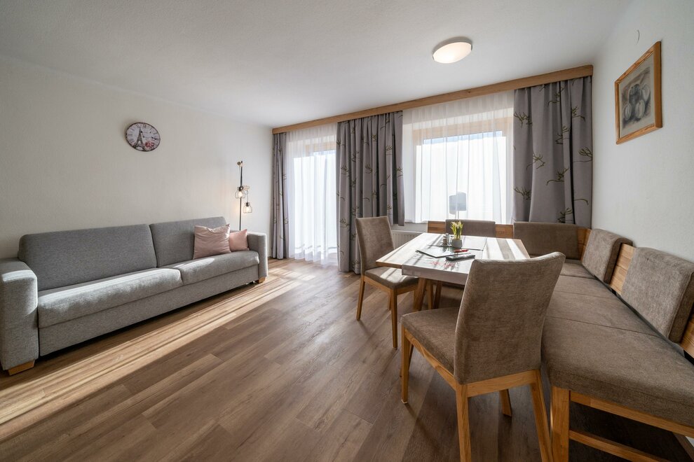 In the morning, we offer a hearty, rich buffet breakfast with products from our own farm. In the evening, you can enjoy regional specialties choosing your preferred set menu. By request we also serve vegetarian dishes. Furthermore, you might treat yourself to a drink in one of the cosy lounges “Kachelofenstube” and “Zirbenstube”, in the winter garden or on the sunny terrace. Relax in our sauna area with a Finnish sauna, a steam bath, an infrared cabin, and a solarium.