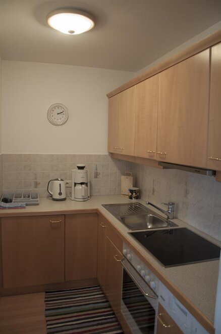 50 m², on the first floor, separate entrance, spacious entrance hall, fully equipped eat-in kitchen with dining area and sofa bed, 1 bedroom with double bed, bathroom with shower, separate WC, terrace, garden