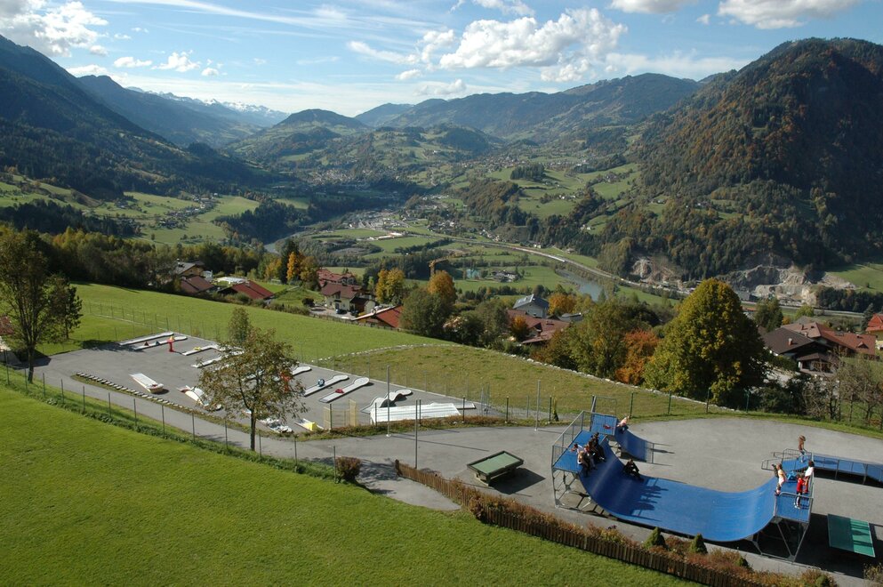 In summer, the hotel's outdoor facilities include a mini golf course with 18 lanes, a pit-pat facility, an 8x15 m panoramic pool, a skate park, a 15x25 m multi-purpose sports field with artificial turf (soccer, basketball),a campfire area and a chill-out area with hammocks.