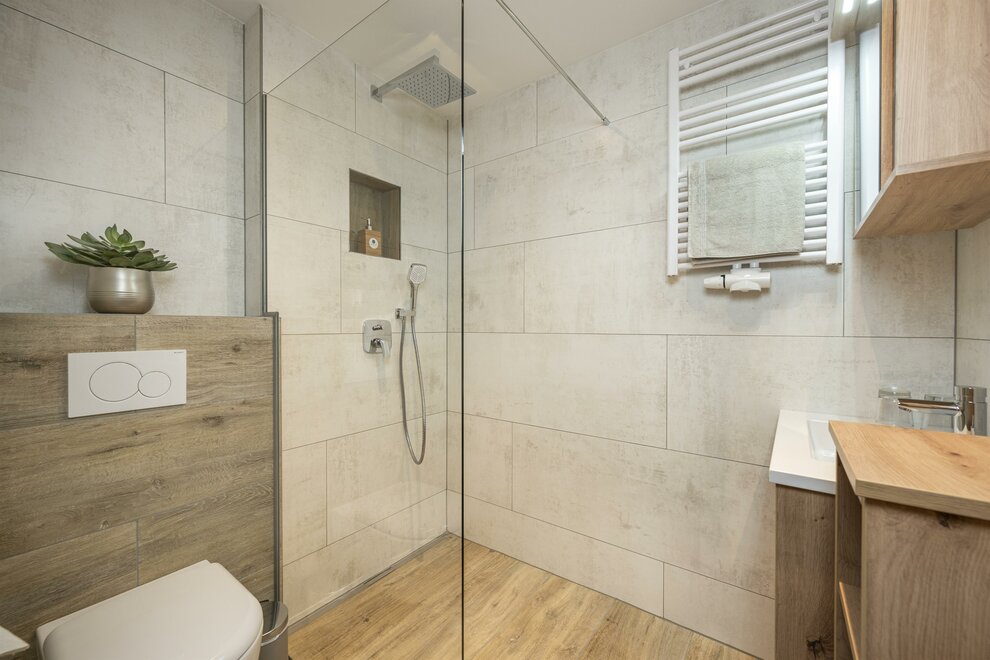 - Application of water-saving showers, sinks (intelligent showers, shower head with low flow rate...)