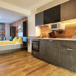 safe, refrigerator, microwave, essentials (towels, bed linen, soap, toilet tissue), hairdryer, vent hood, bed linen available, electric stove, bathrobe on request, cable TV, toaster, open plan kitchen/living room, cooking possibilities, WiFi, open foot-end of bed, coffeemaker, non-smoking room/apt., oven, bed linen (non-allergenic), furniture suite, modern furnishing, towels available, combined bedroom/living room, kettle, TV, freezer compartment, pets permitted on request, balcony, dishes available, island kitchen, dishwasher