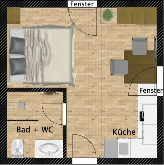 TV, vent hood, furniture suite, hairdryer, modern furnishing, bathrobe on request, toaster, microwave, combined bedroom/living room, cooking possibilities, dishwasher, essentials (towels, bed linen, soap, toilet tissue), open plan kitchen/living room, towels available, bed linen available, dishes available, refrigerator, pets permitted on request, cable TV, bed linen (non-allergenic), freezer compartment, safe, oven, WiFi, open foot-end of bed, electric stove, kettle, coffeemaker, island kitchen, non-smoking room/apt.