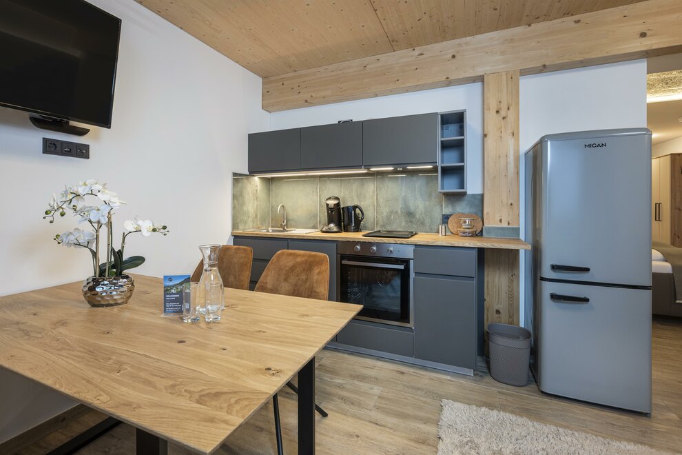 modern furnishing, pets permitted on request, open foot-end of bed, bed linen available, open plan kitchen/living room, cooking possibilities, combined bedroom/living room, hairdryer, safe, furniture suite, coffeemaker, bed linen (non-allergenic), bathrobe on request, dishwasher, toaster, electric stove, refrigerator, freezer compartment, cable TV, vent hood, WiFi, dishes available, towels available, essentials (towels, bed linen, soap, toilet tissue), non-smoking room/apt., kettle, island kitchen, TV, microwave, oven