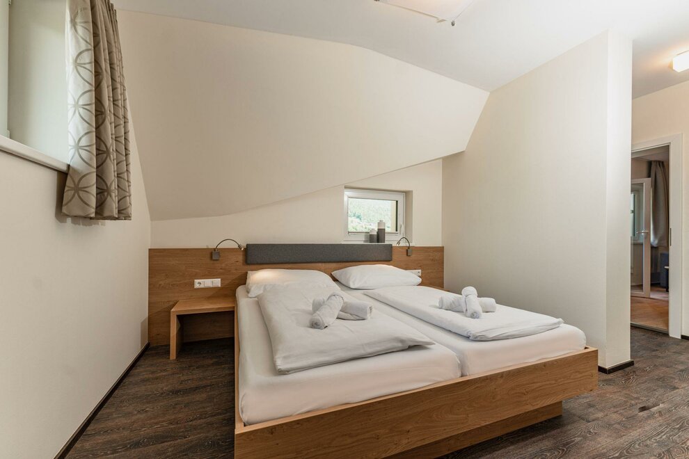 In the category Apartment Family 1 Bedroom with balcony, a particularly family friendly second floor apartment awaits you, where 3-6 guests have space with approximately 48m² at your disposal. Rest and pleasant dreams await you in the family size bedroom with king size bed and two seater couch, shower and WC’s. The kitchen is fully equipped and has an inviting living and dining area, with a large dining table and two seater couch. Fresh bed linen and towels are included. From the especially large balcony, you have a view of the Dachstein massif.