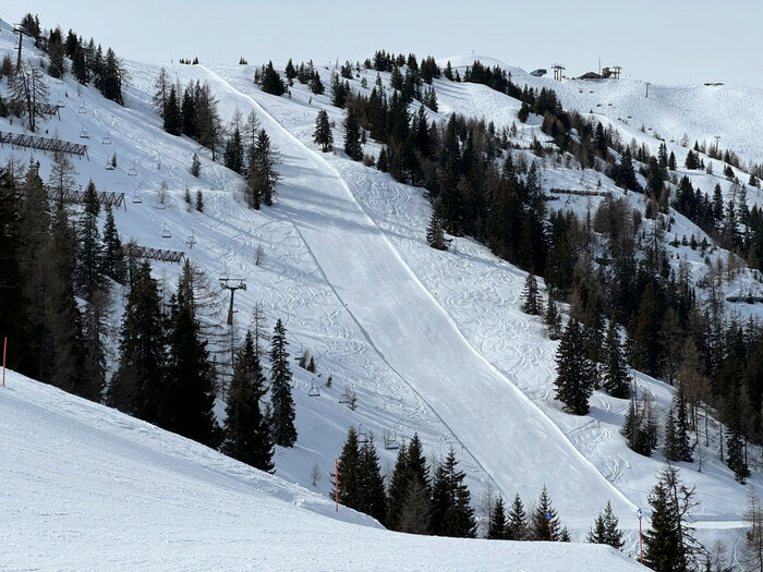 The red run, which connects directly to the Lärchenhang, was widened a few years ago. Since then, it only lives up to its name in December and January because it is no longer quite so dark there. However, you can now experience the training sessions and races of the local clubs that use this piste up close and learn a little about the technology.