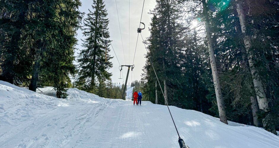 Nature lovers will also get their money's worth here: Throughout the area, there is only natural snow or ‘organic snow’, as it is called here. When there is enough snow, the lifts are switched on, otherwise they stand still. The same applies to the Snowpark Livingroom Hochkeil, next to the next lift, the Arthurhauslift. An interesting detail about the lifts: nobody rides a gondola here... the only one there is is on the ground near the summit cross on the Hochkeil. Instead, there are three T-bar lifts (two of which are rather longer), a platter lift and a beginner's T-bar lift.