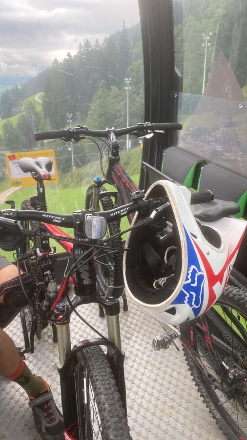 From the gondola, other bikers on the more difficult trails caught our eye. Wide jumps, uneven conditions and riders with professional downhill bikes made us doubt that we would be able to ride the red trail, let alone the black one. Nevertheless, we overcame ourselves and ventured down the red trail. From this difficulty level upwards, a full-face helmet is mandatory.