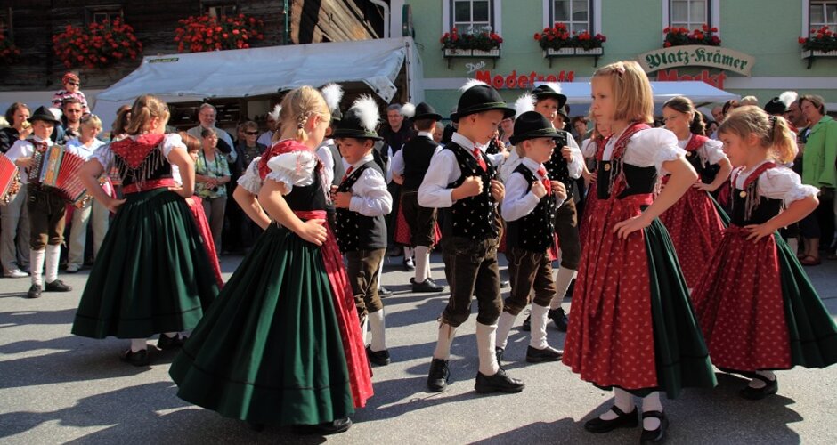 Assembly of the clubs and the population at the lift parking lot of the Panoramabahn for the annual harvest festival. Following the festive church service, the clubs of the Großarltal valley will proceed together to the town center. There, culinary specialties from the 'Bauernherbst' cuisine, traditional carving demonstrations, and a farmers' and crafts market await you. Various music and dance groups will provide a lively musical entertainment.