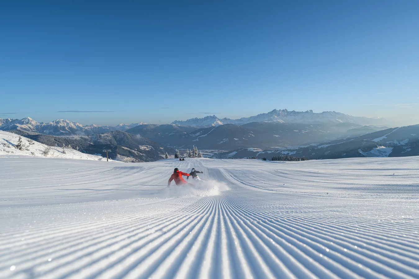 Thanks to the connecting Panorama Link between Snow Space Salzburg and the neighbouring ski resorts of Flachauwinkl and Zauchensee, winter sports enthusiasts can enjoy skiing on 12 peaks, down 5 valleys and over 210 kilometres of slopes.