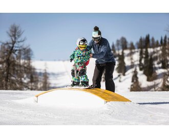 The Familypark Rosskopf in Zauchensee waits with creative set-up - ideal for small and tall rookies to improve the skills to know the snowpark lifestyle. The playground for shred-youngsters is easy reachable with the Rosskopfbahn. kickers for first airtime-experiences, spine and mushroom for jib-action, boxes and other highlights provide for much fun and adventure on two lines.