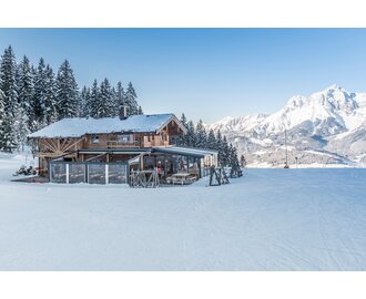 The Tischlerhütte ski hut is located on the Aberg directly on the piste in the middle of the Hochkönig region of the Schönangerbahn, with a fantastic view of the Steinernes Meer - simply a place to feel good! The favourable piste location guarantees skiing fun for beginners and advanced skiers. If you just want to leave your skis in the valley, it's a 10-minute walk across the slopes to the terrace, where you can enjoy the food and the sun! Hot and cold dishes in our rustic and stylish hut will warm your heart.
