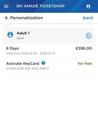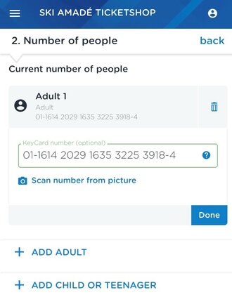 With the ski ticket number on the back of your ski ticket (the KeyCard), you can reload your ski ticket easily, conveniently and safely in the Ski amadé online ticket shop.