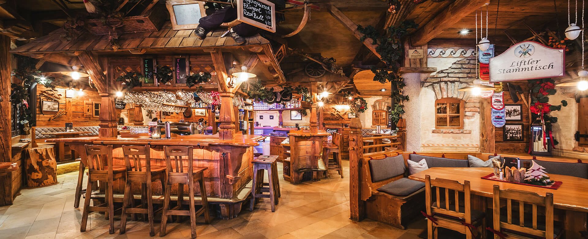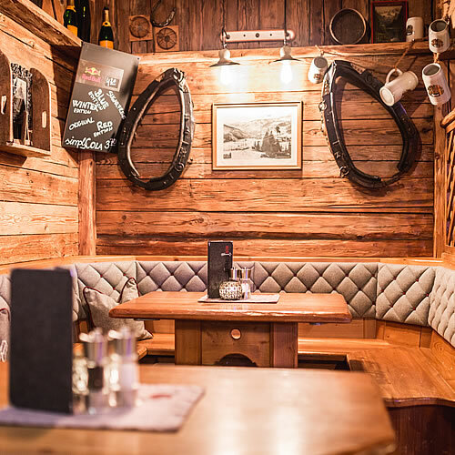 The Kühberg Alm is a traditional Salzburg wooden hut in the bottom station of the Grafenberg Lift where skiers and guests can be spoiled all day long. We offer traditional Austrian home cooking, a different midday set menu every day and there is always plenty of choice: something warm from the soup bowl, various salads, baked potatoes, specialities of the region, pasta dishes and, of course, our homemade Austrian cakes and desserts.