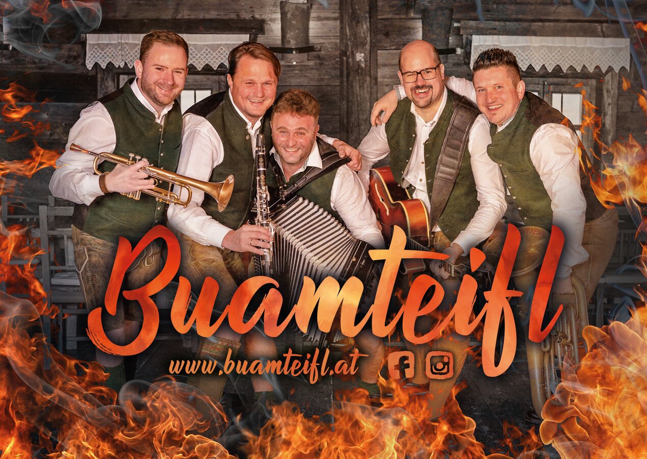 Fünf "Vollblut-Oberkrainer" mit jahrelanger Bühnenerfahrung und der nötigen Freude zur Musik und Unterhaltung – das sind die Buamteifl, die für frischen Wind auf den Bühnen des Landes sorgen.