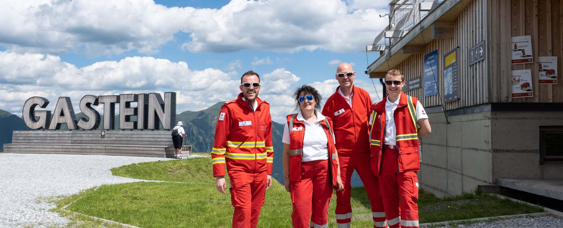4 Rettungssanitäter mit der Bergstation und Gastein im Hintergrund