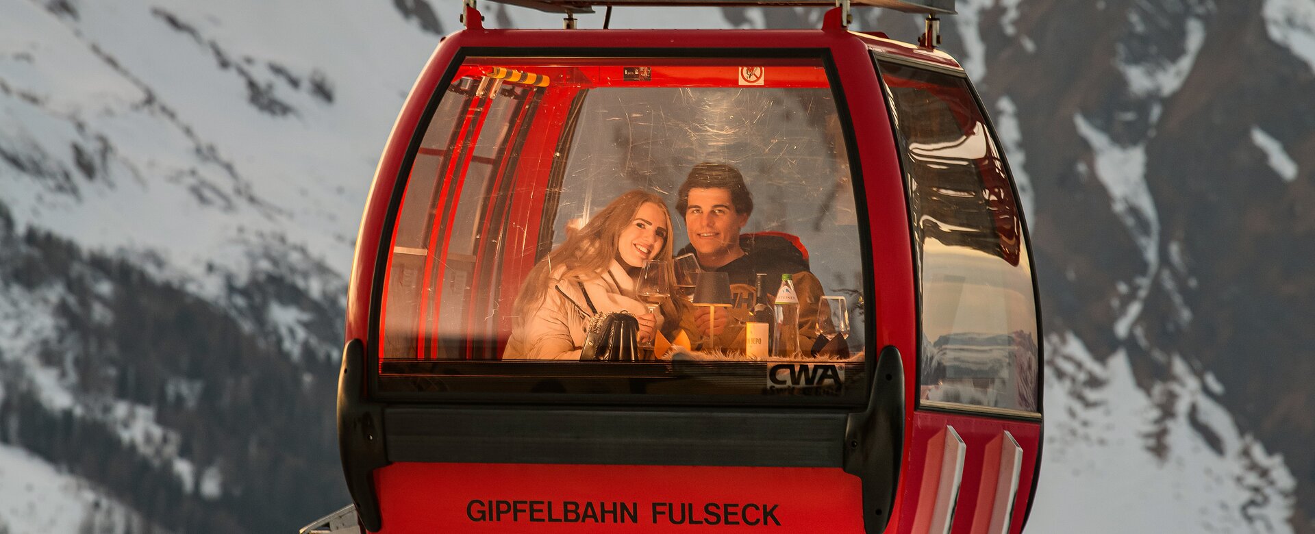 Beim Gondeldinner fahrst du mit der Gipfelbahn - Fulseck durch die nächtliche Bergidylle, während dir ein herrliches 4 Gänge Menü serviert wird.