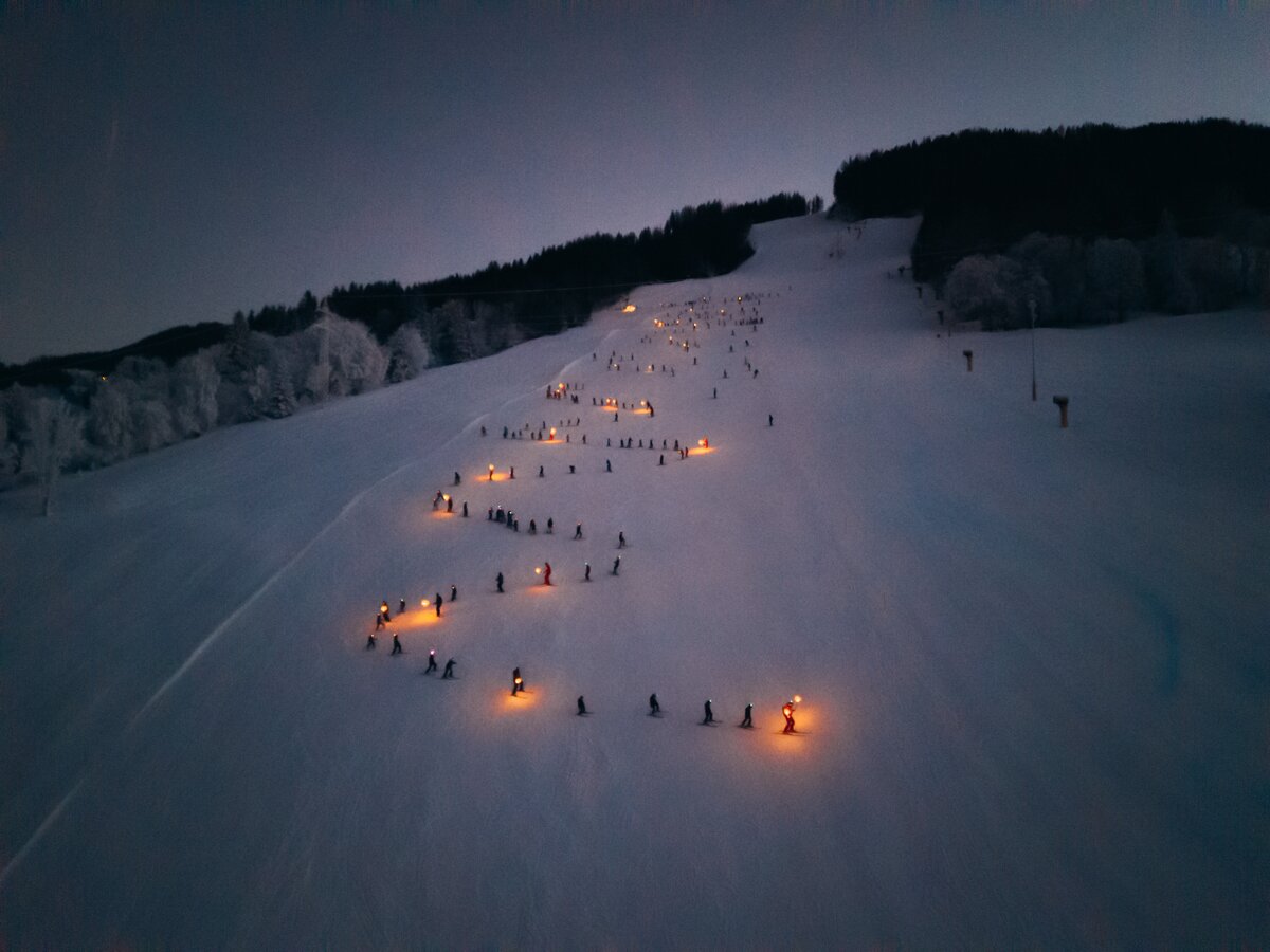 Am 31. Dezember startet unser traditioneller Kinder-Fackellauf. Jedes Kind, das die Talabfahrt (Achtung: Rote Piste!) gut meistert, bekommt eine LED-Fackel und fährt gemeinsam mit den Skilehrern im leuchtenden Zug hinunter ins Tal. Unten angekommen wartet eine spektakuläre Pistengerät-Show, Musik vom DJ, eine coole Schneebar und natürlich das erste "Prosit Neujahr!" - ein unvergesslicher Start ins neue Jahr!