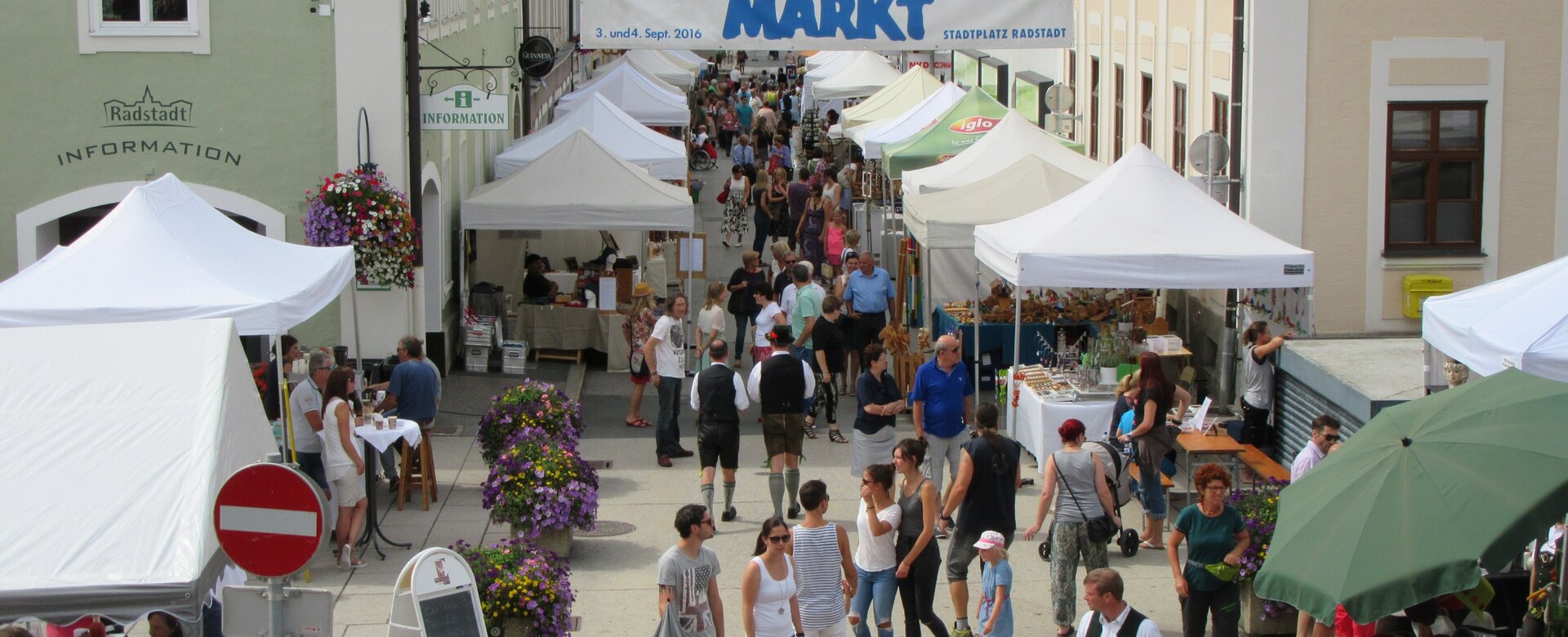 Einer der bedeutendsten Kunsthandwerksmärkte Österreichs lockt alljährlich zahlreiche Interessierte in die "Alte Stadt im Gebirge". An die 100 Handwerker, Designer und Künstler aus Österreich, Deutschland und anderen Nachbarländern nehmen am Radstädter Markt teil. Zu sehen und zu kaufen gibt es exklusives Kunsthandwerk aus den verschiedensten Materialbereichen wie Keramik, Schmuck, Glas, Gefilztes, Gestricktes und Gesticktes, Holzschalen, Dosen und vieles mehr. Geboten wird handwerkliche und künstlerische Qualität auf höchstem Niveau. Seit Jahren werden Preise für gestaltendes Handwerk, aktuelles Design, innovative Produktgestaltung und angewandte Kunst von einer fachkundigen Jury vergeben. Zudem gibt es jedes Jahr eine Sonderausstellung zum Kunsthandwerksmarkt, die bereits am Vorabend eröffnet und im Zeughaus am Turm gestaltet wird.