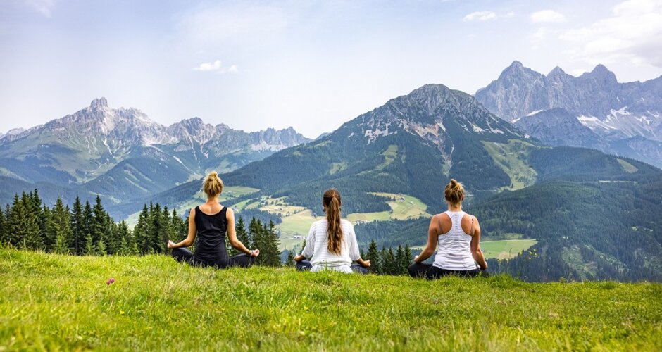 Lust auf Yoga in unberührter Natur inklusive traumhaftem Bergpanorama? Dann kommt ins Bergbahnen Büro und holt euch eine Yoga-Matte sowie ein Ticket für eine Berg- und Talfahrt!