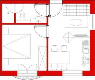 Bettwäsche vorhanden, Wohn-/Schlafräume kombiniert, Teppich Schlafzimmer, Kühlschrank, Lärmgeschütztes Zimmer/App., Sitzgruppe, Wöchentliche Reinigung, Backofen, Mikrowelle, Waschmaschinenbenutzung, Handtücher vorhanden, Geschirr vorhanden, Wohnküche, Internetanschlussmöglichkeit, Tisch- und Küchenwäsche, Geschirrspülmaschine, Balkonmöbel, Küchenzeile, Familienzimmer / app., Kabelfernsehen, Nichtraucher Zimmer/App./Whg., Fußende der Betten offen, Fernseher, Küche, Dunstabzug, Sauna, Wasserkocher, Ruhiges Zimmer/Appartement, Gefriermöglichkeit, Wohn-/Schlafräume getrennt, Kaffee-Maschine, Gefrierfach, WiFi, Separate Schlafzimmer: 0