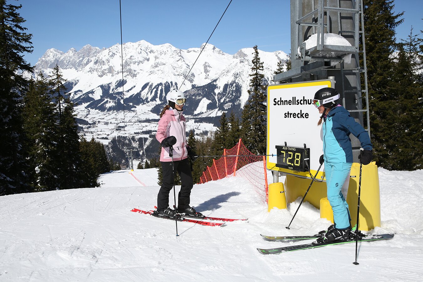 On the Planai's racing and speed tracks, you can test your speed: The racecourse at the middle station features 25 directional gates, and on the Ski-Movie course in the Weitmoos area, your run will even be filmed. On the Speed Shot track, a timing board will reveal your personal record.