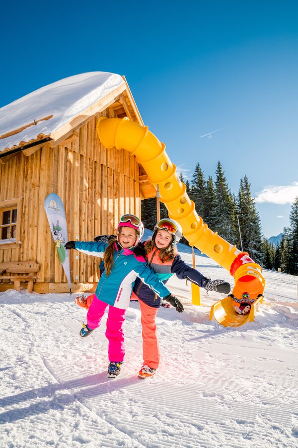 On a ski holiday at Planai, families can enjoy a special winter experience with the Hopsi Winter Children's Land and the winter hiking trail. The children's ski world around Märchenwiese offers numerous play stations, such as slides, climbing walls, and a wooden tipi, as well as skiing fun on the Funslope and Funcross tracks. Even non-skiers will have plenty to enjoy: playful elements at the Kasalm and Dachstein gondola provide entertainment.