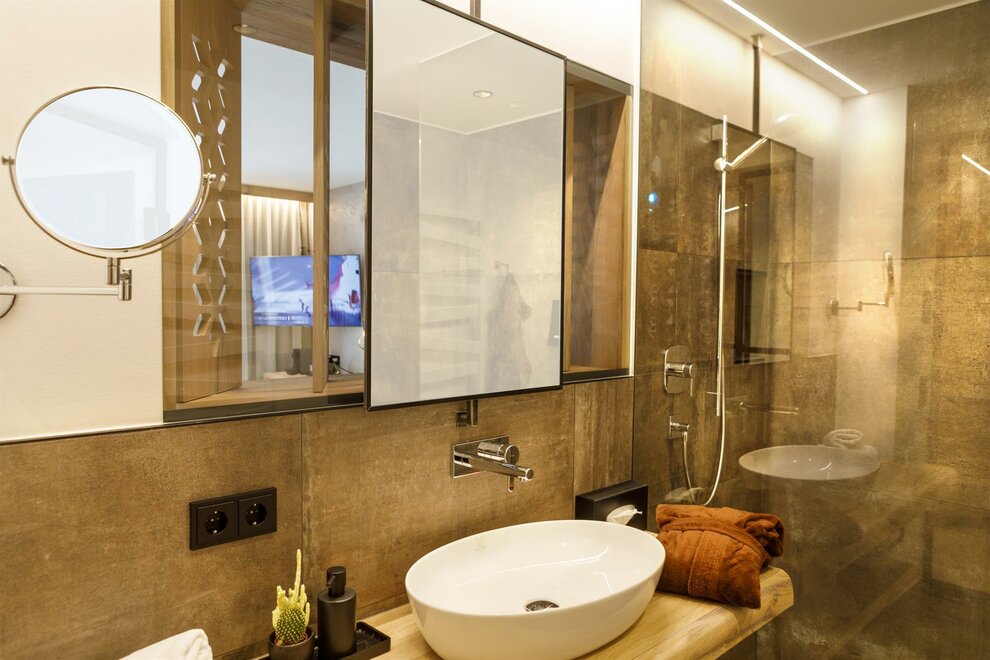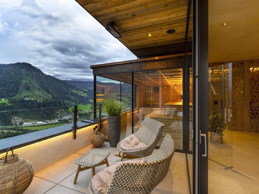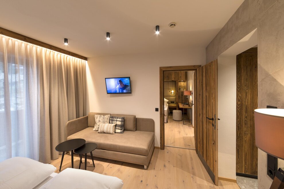 Luxurious suite 50m², balcony 5m² with fantastic mountain view, separate bed-and livingroom, air conditioning, bathroom with shower, separate toilet, 2 flat screen TVs, room safe, coffee machine, minibar, telephone, bathrobe and slippers