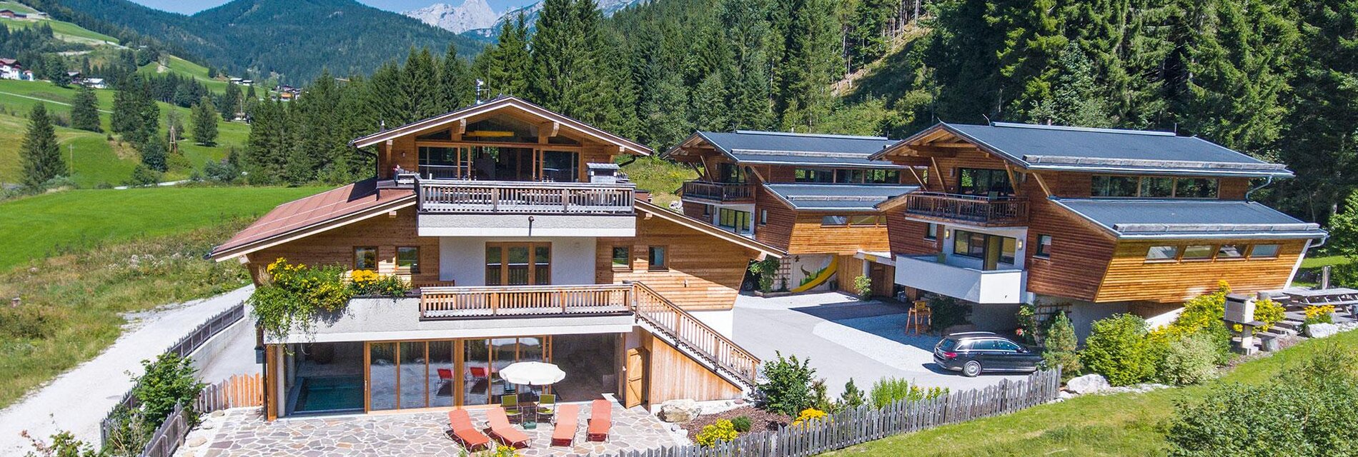 The ALPIN CHALETs are comfortable, spacious holiday homes with a modern, alpine architecture. All chalets are equipped with a private sauna, big terraces, a well-equipped kitchen, and an open loft-style living and dining area.