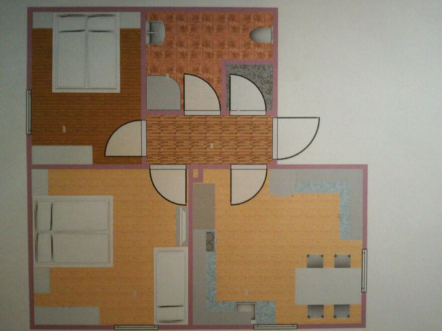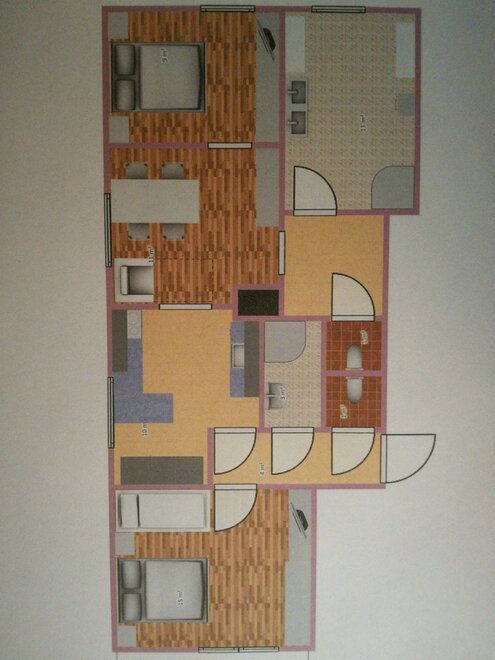 We can offer you 1 kitchen, sleeping area and 1 bathroom with toilets.Bed distribution