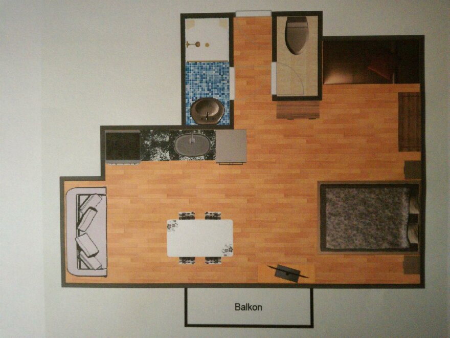 Studio, Woonkeuken, Electrisch fornuis, Servies aanwezig, Haardroger, Televisie, Diepvries, Tafel- en keukenlinnen, Balkon, Afzuigkap, Broodrooster, Radio, Koelkast, Balkonmeubel, Wekelijkse reiniging, Kabeltelevisie, Handdoeken aanwezig, Bedlinnen aanwezig, Voeteinde v. de bedden is vrij, Vaatwasmachine, Waterkoker, Rustige kamer/appartement, Magnetron, Keuken, Koffiezetapparaat, Wifi