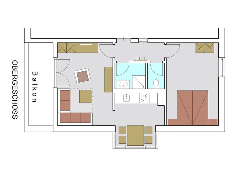 This apartment is located in the main house on the 2nd floor and is 45 m². It has one bedroom with a double bed and shower/toilet. The fully equipped kitchen is a separate room with a couch and seating area. Very nice balcony on south side!