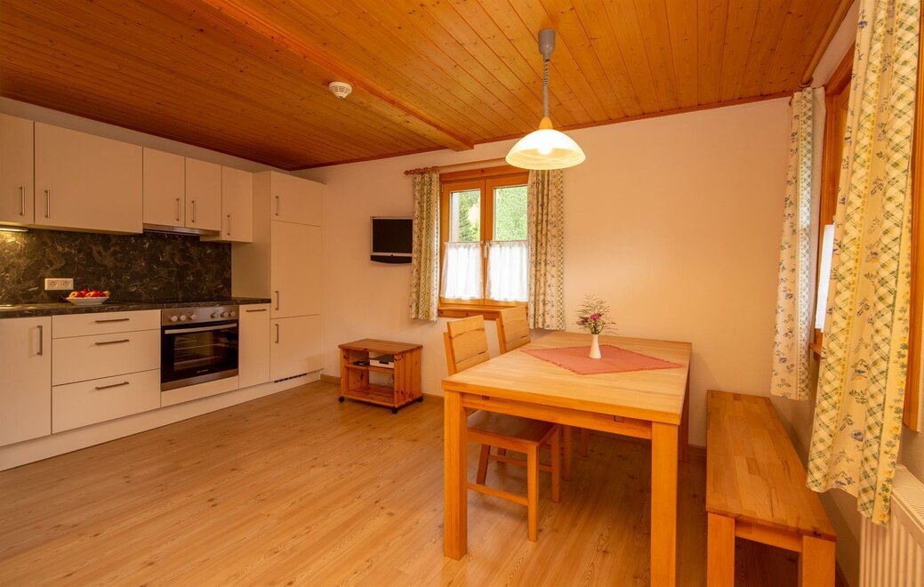 Ons appartement, uitgerust met alpen-dennenhout, biedt u 1 slaapkamer met een tweepersoonsbed, balkon, hal, aparte douche en wc, ruime woonkeuken met kitchenette, eethoek en bank.