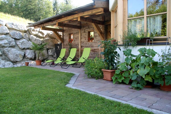 30m² appartement met balkon op het zuiden en privé buitenbadkuip (zomer), kitchenette, gescheiden douche/WC, televisie, W-Lan, kabel-TV