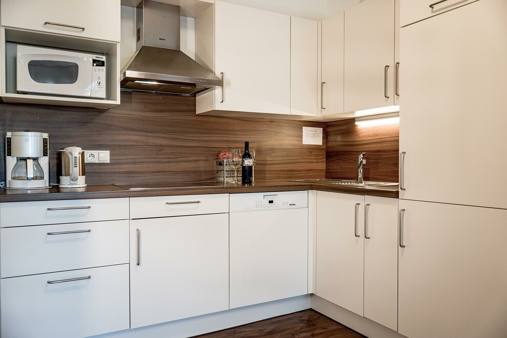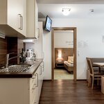 Apartment for 2-4 persons with approx. 40 sqm. The Comfort apartment is equipped with 1 sleeping room with a kingsize-bed an additional sleeping-couch for 1-2 persons, 1 bathroom with shower and toilet, living-kitchen-area with dining area and a completely equipped kitchen (ceramic glass cooktop, microwave, fridge with icebox, coffee mashine, dishwasher and also cooking utensils and tableware). All apartments and rooms have a TV, safe, WIFI Internet and a hairdryer at one´s disposal.