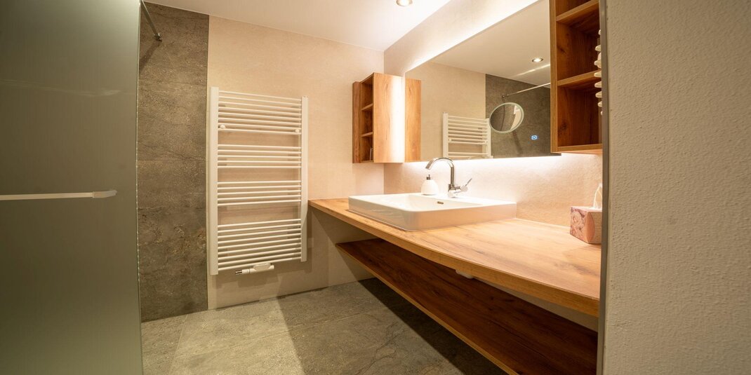 Voorzieningen: Massief houten meubels, 2x Slaapkamer, 2x Douche/WC, TV, gratis WLANInrichting badkamer