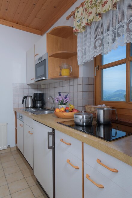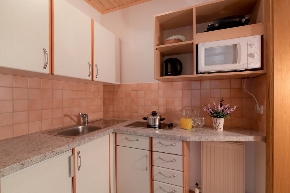 kitchenette (ceramic hob, filter coffee machine, kettle, grill/toaster, microwave, fridge with freezer compartment)