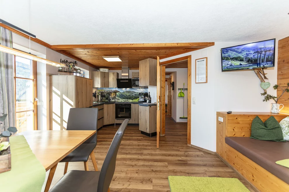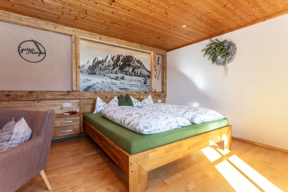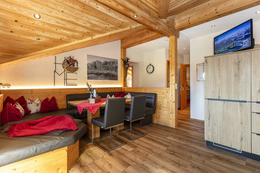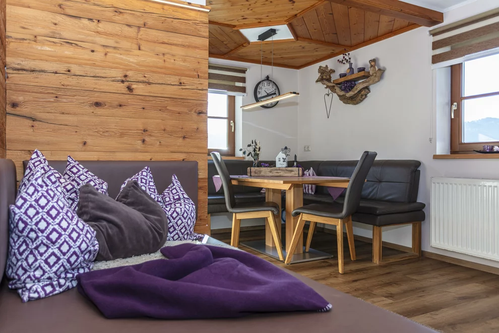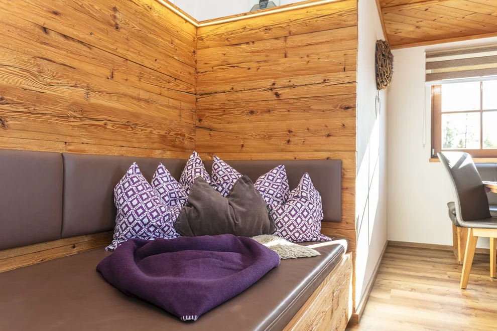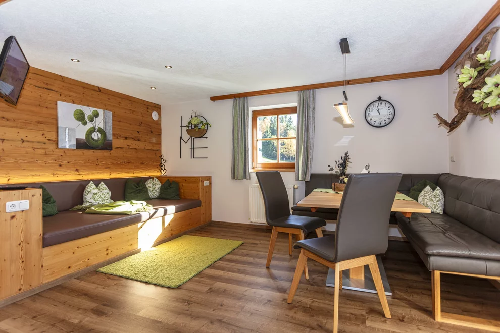 Alle drie de vakantieappartementen in verschillende groottes voor 2 tot 7 personen bevinden zich in de boerderij, zijn uitgerust met geoliede natuurvloeren en bieden jullie zo een behaaglijk, gezellig woonklimaat.