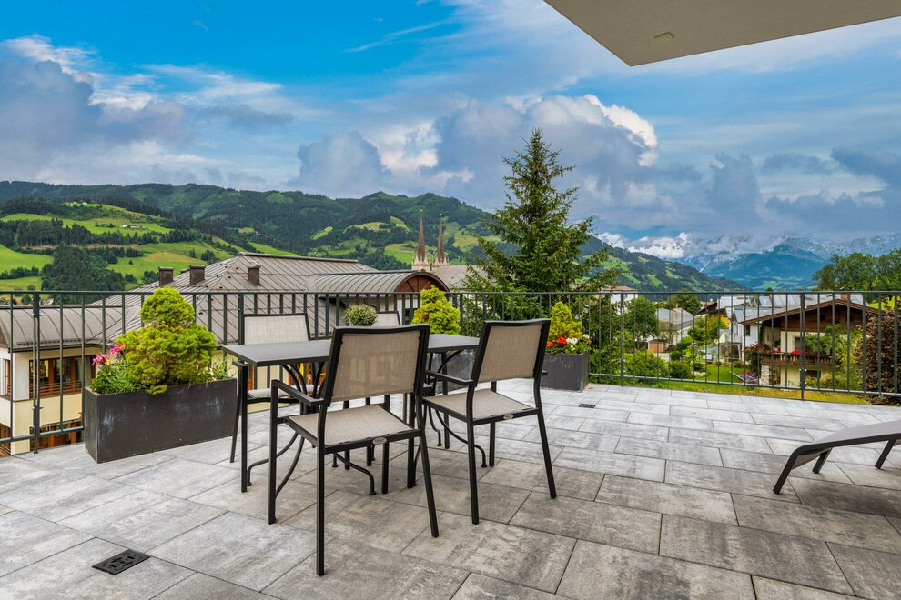The penthouse with a large roof terrace has a breathtaking view of the mountain panorama promises relaxing holidays. The penthouse also offers air conditioning for pleasant temperatures in all seasons.