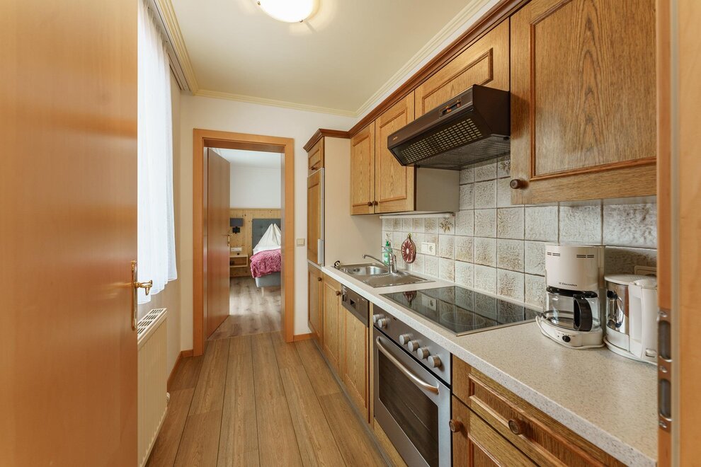 Our comfortably furnished apartments in traditional Austrian style provide two separate bedrooms, a brightly living and dining room with a modern kitchen unit, a big bathroom, separate toilet and balcony.