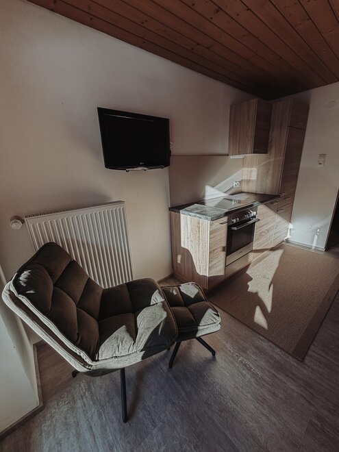 This cozy apartment for up to 3 people features a bedroom with a double bed and sofa, as well as a living-dining area with a seating area, kitchenette, coffee machine, and TV. It also offers a shower, a separate WC, and a balcony.