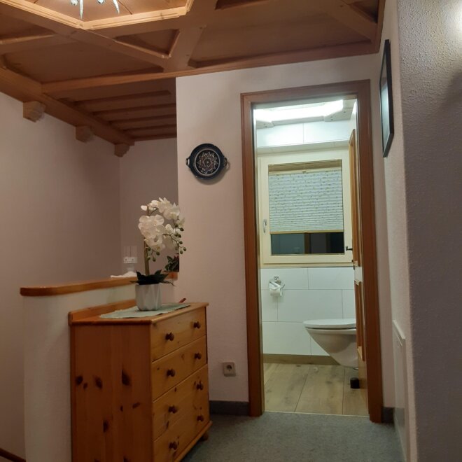 Voor 2-5 personen bieden wij een net gerenoveerd, gezellig vakantieappartement van 65 m² met 2 aparte slaapkamers op de gehele bovenverdieping van ons Haus Leonhard met een eigen ingang. U vindt er een volledig uitgeruste keuken met kitchenette, vaatwasser, magnetron, grote eethoek, SAT-TV en radio met CD-speler. Op het op het zuiden gelegen balkon met een prachtig uitzicht op de bergwereld van de Schladminger Tauern kunt u ongestoord genieten van de zonnestralen en de schone lucht. Onze tuin nodigt uit tot verpozen met familie of vrienden, terwijl uw kinderen zich op de speelplaats naar hartenlust kunnen uitleven. Mocht u comfortabel met de trein aankomen, dan halen wij u graag op van het station Schladming. Een skiruimte is beschikbaar voor u. Uw auto kunt u parkeren op de eigen parkeerplaats.