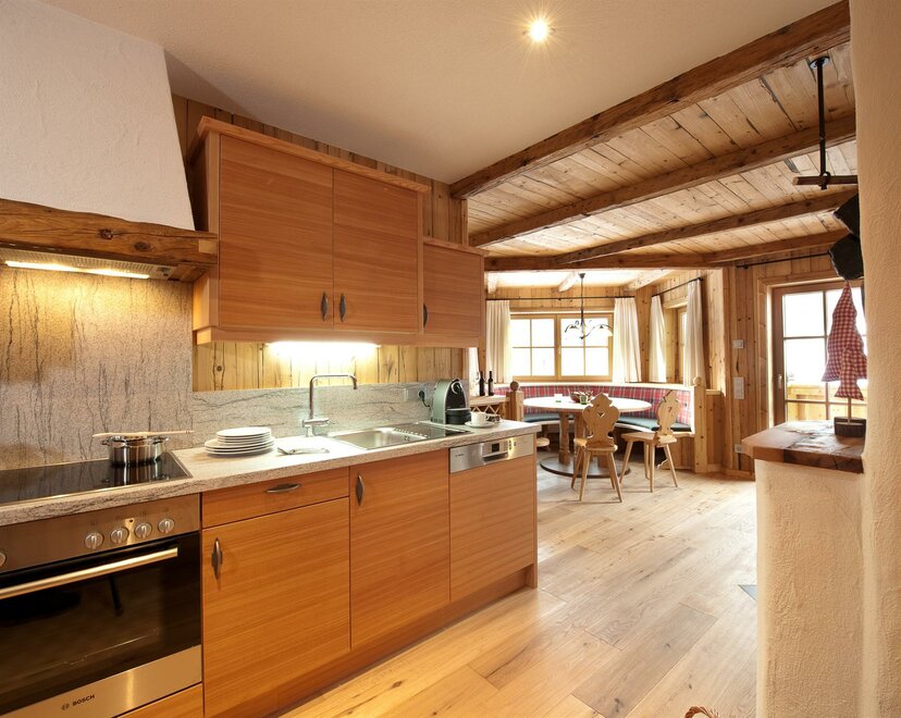 3 separate bedrooms made of austrian pine wood, two bathrooms, large living area with sofa and open fireplace,