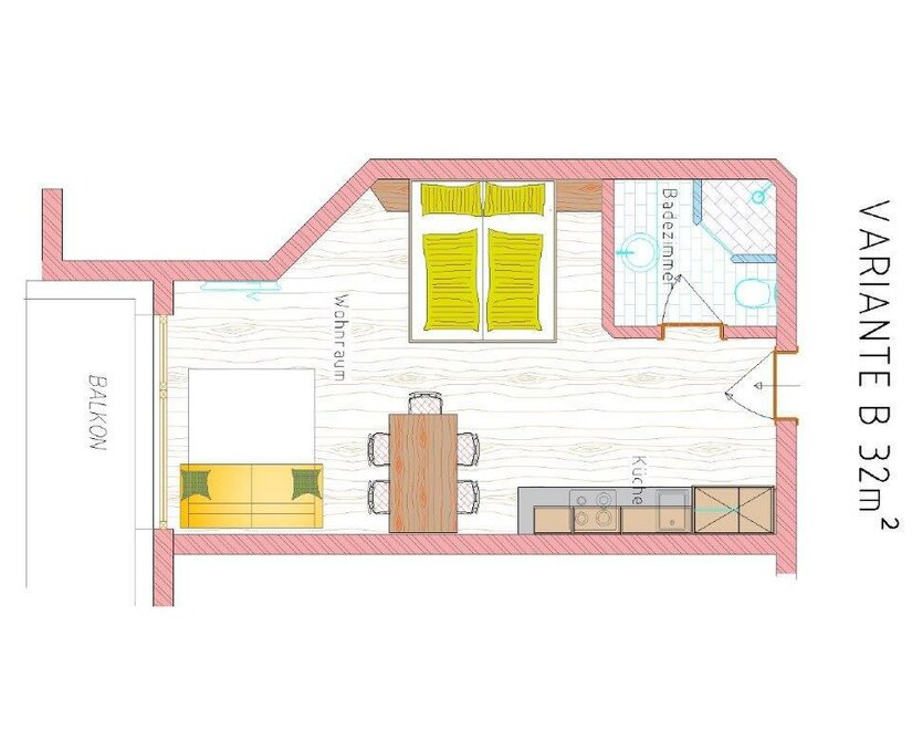 One-room suite, 32m², equipped with solid wood furniture, bathroom,