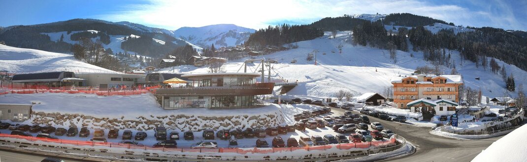 Midden in het skigebied Hintermoos 8-persoons gondel Sinalcobahn, 6-persoons stoeltjeslift Schwarzeckalmbahn. (Schwarzeckalmbahn ook in de zomer geopend)